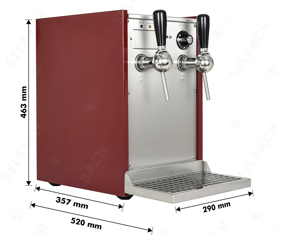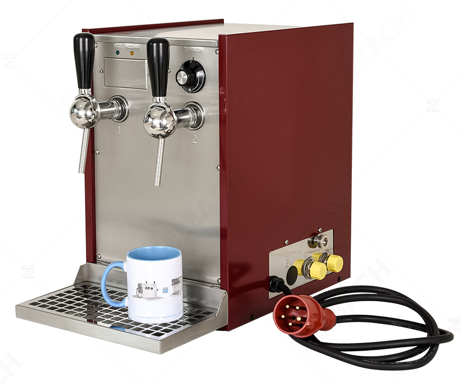 - zwei beheizte Kugelzapfhähne für unterschiedliche Getränke